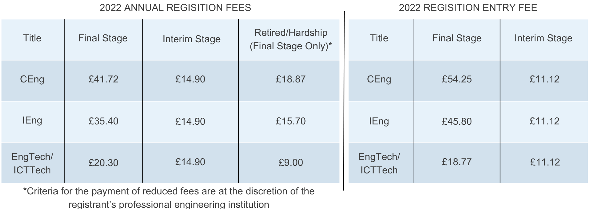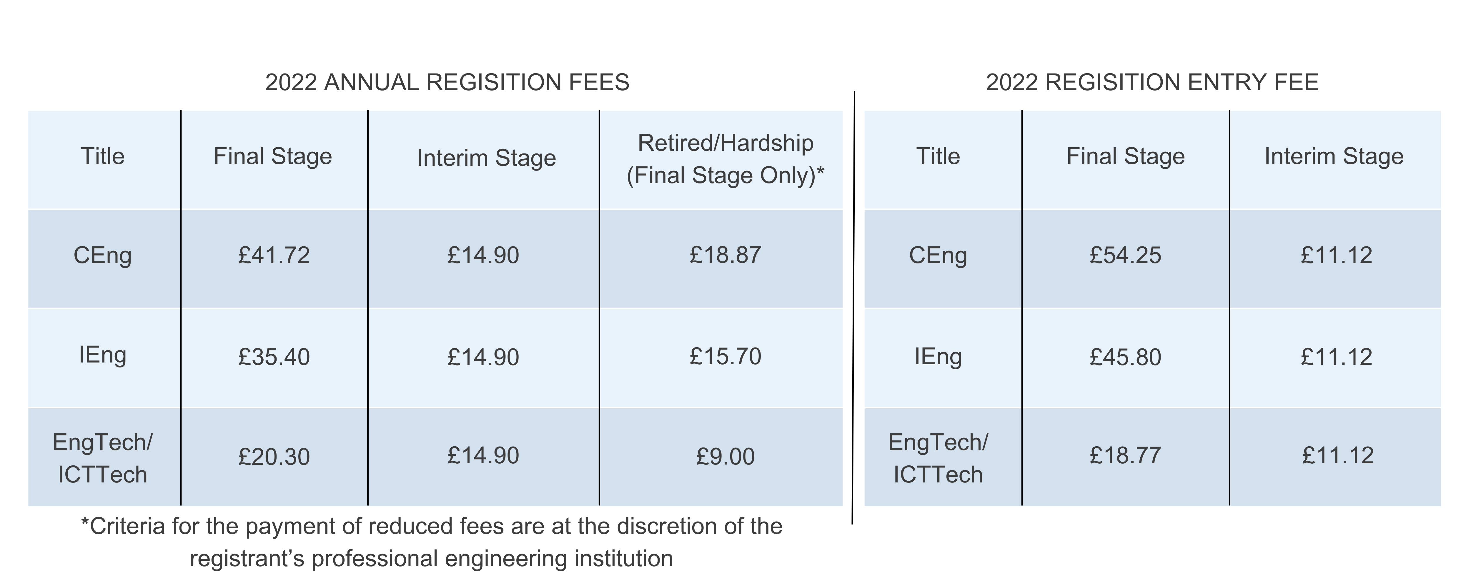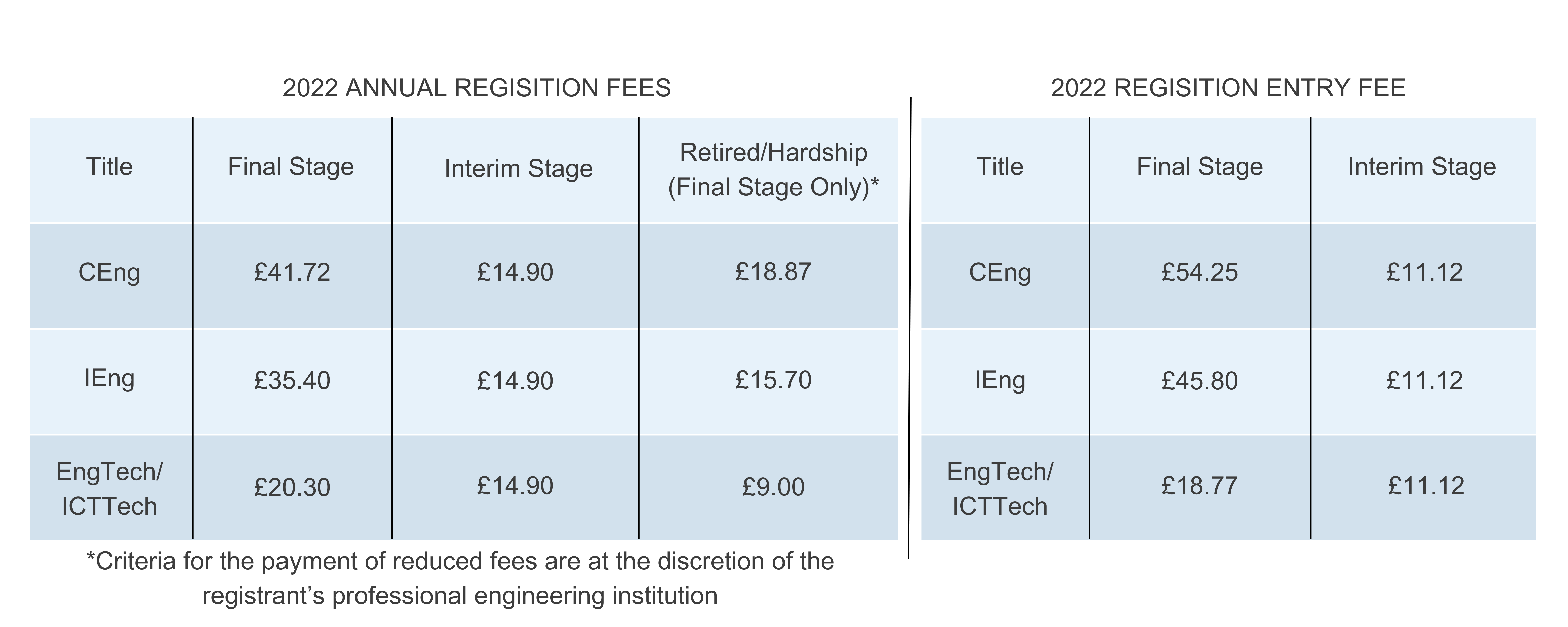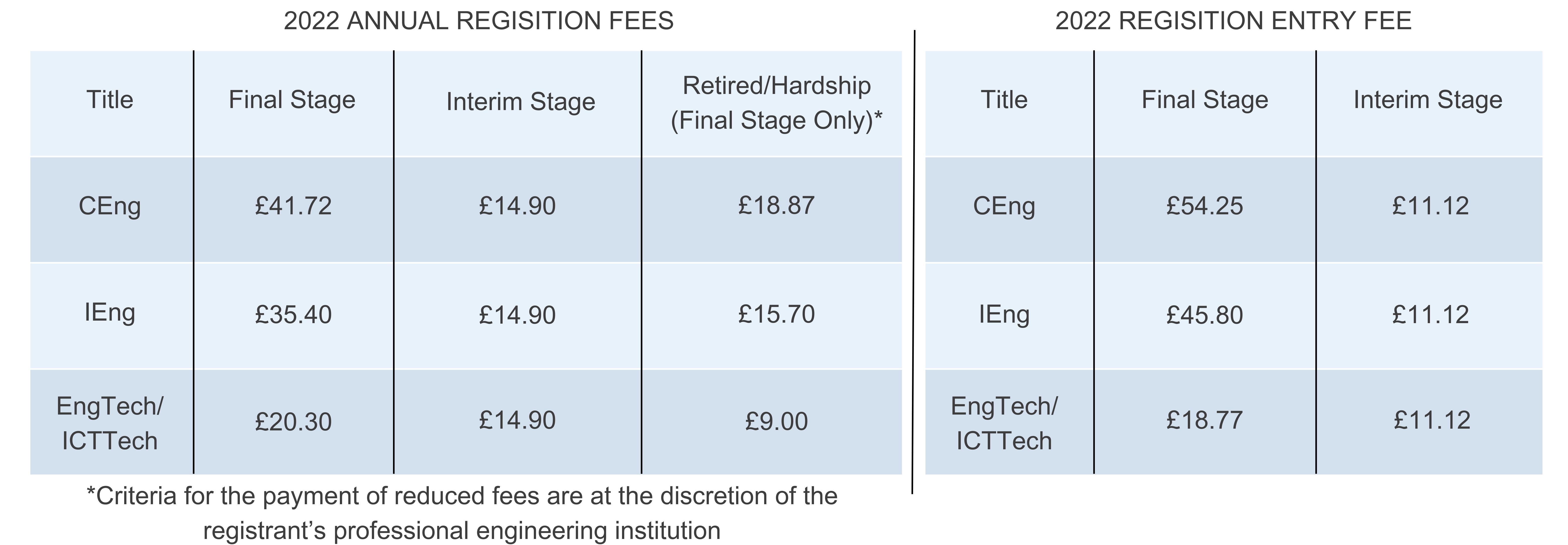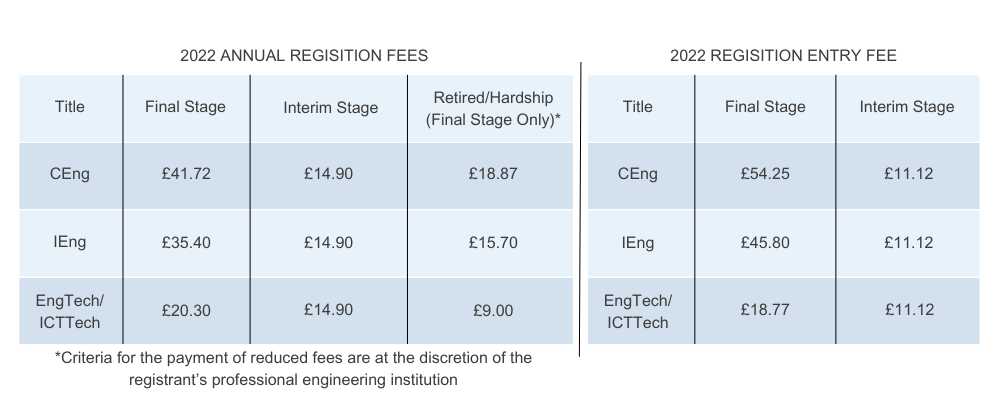 Registration fees are paid annually to the professional engineering institution through which you are registered with the Engineering Council.